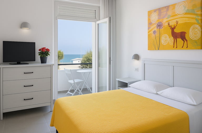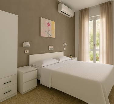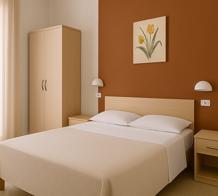 Le nostre camere offrono un soggiorno confortevole con aria condizionata e Wi-Fi gratuito, immerse in un'atmosfera familiare. Ideali per una vacanza rilassante sul mare di Senigallia.